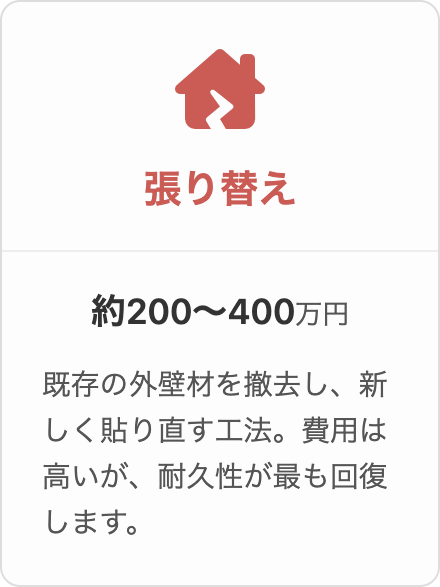 一方、築25年を超え、断熱性も改善したい場合は、重ね張り(カバー工法)が長期的な視点で最もコストメリットが高くなる可能性があります。
