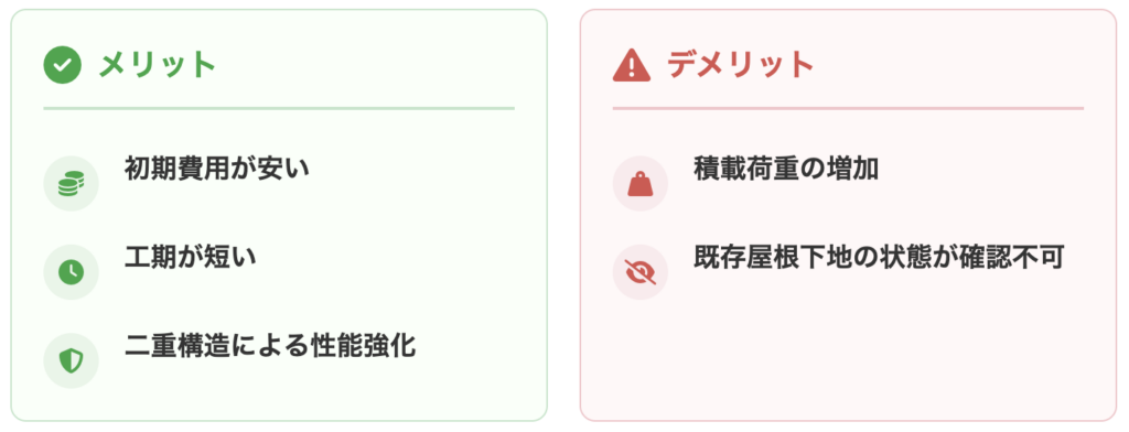 一方で、カバー工法には構造的な制約も伴います。