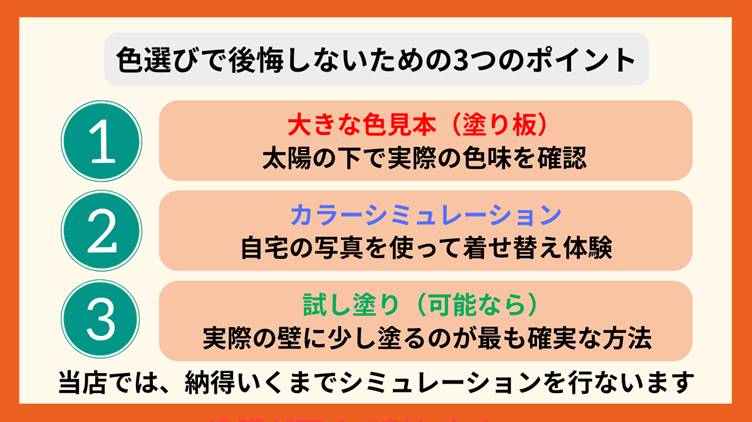 実際の家の写真を使って、塗装後のイメージを確認できるシミュレーションソフトを活用すると、失敗のリスクを減らせます。