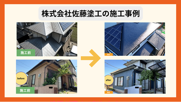 私たちは外壁・屋根だけでなく、付帯部などの細かい部分まで丁寧に施工を行なっています。実際の施工事例をご覧いただくと、塗装範囲のイメージが湧きやすいかと思います。