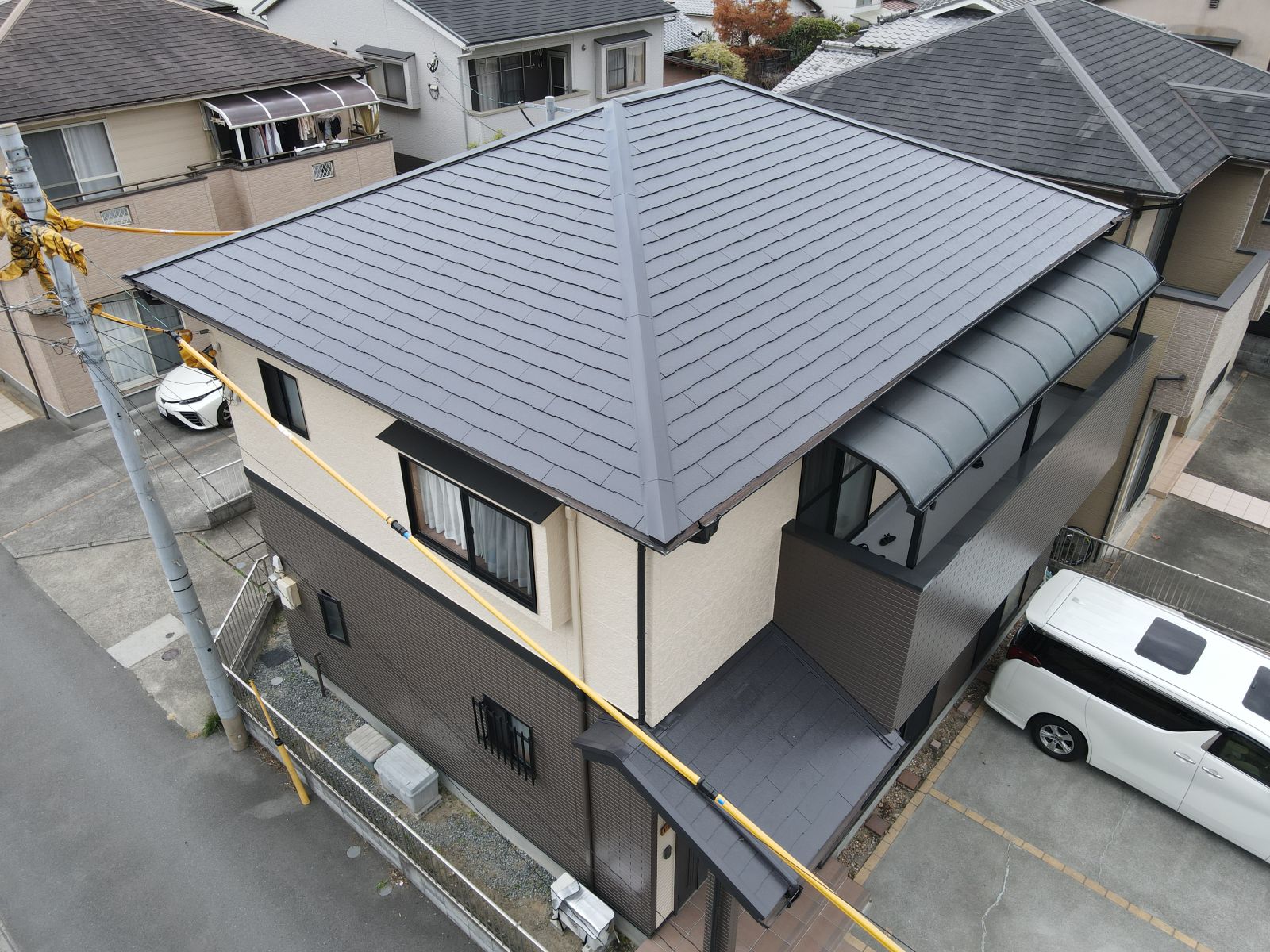 屋根は「カーボングレー」の落ち着いたカラーで仕上げました。