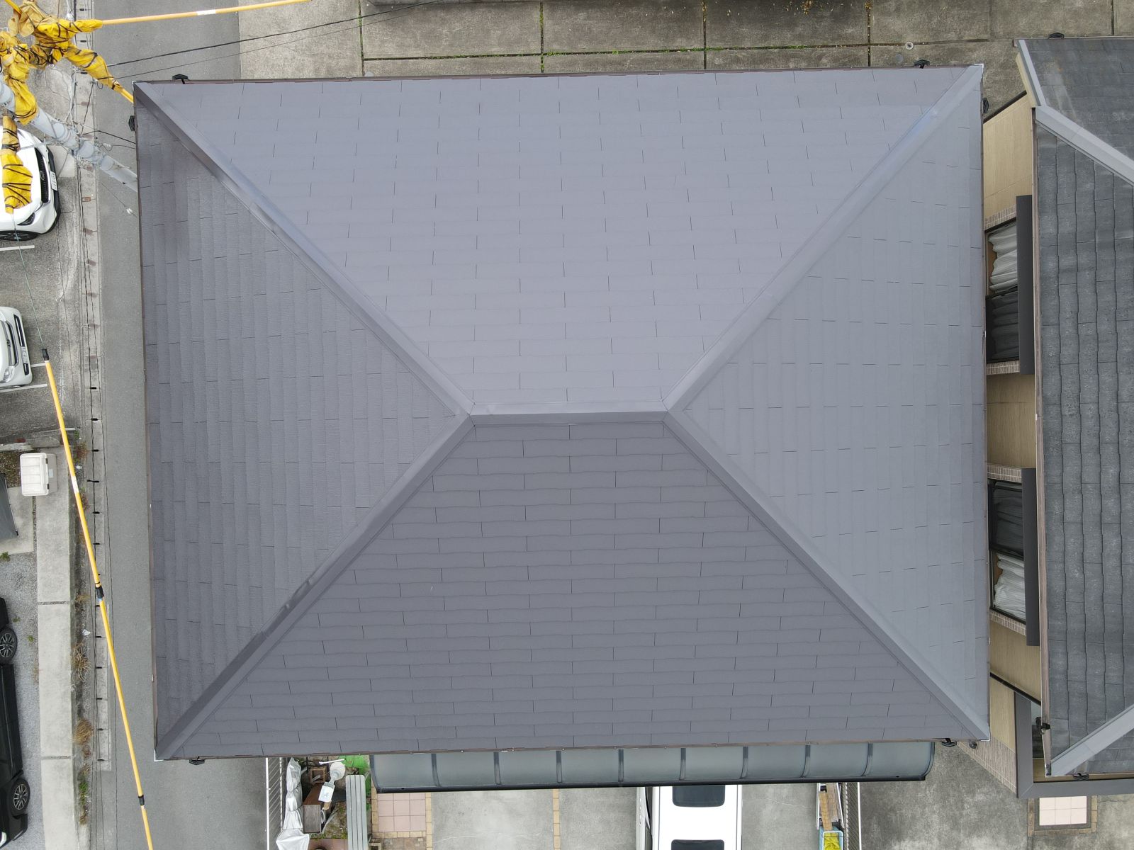 屋根使用塗料は「スーパーシャネツサーモF」です。遮熱性に優れた塗料です。