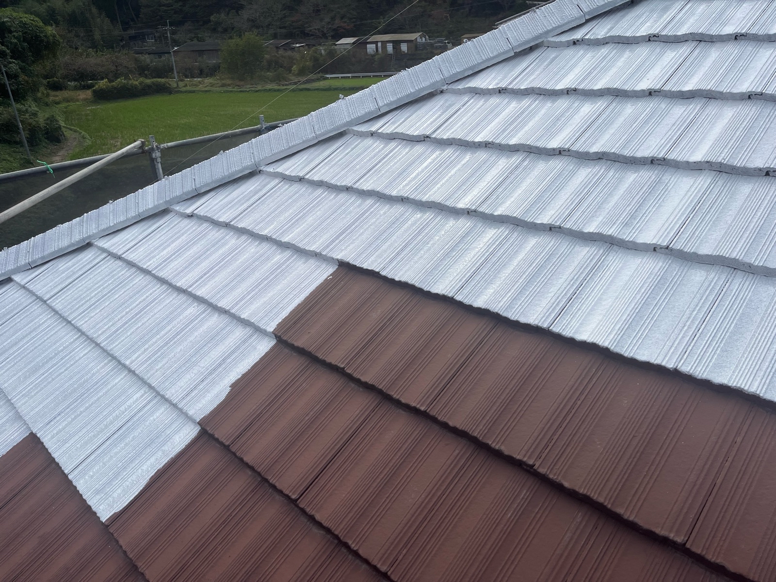 屋根使用塗料は「超耐候無機EXコートJY-IR」です。遮熱性と耐候性が最強の塗料です。