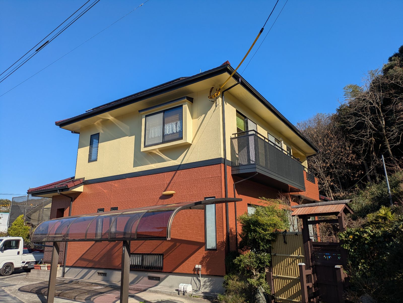 外壁は、「テラコッタ」「レモン」のツートンカラーで仕上げました。